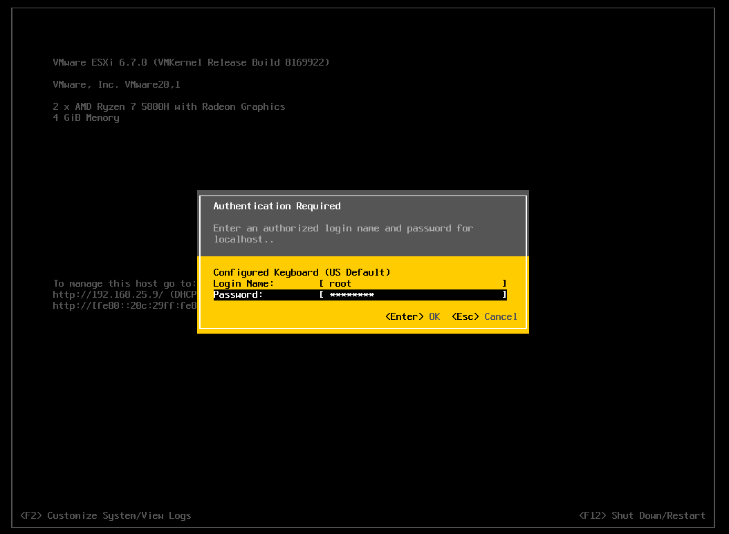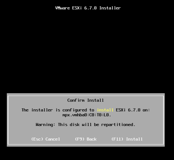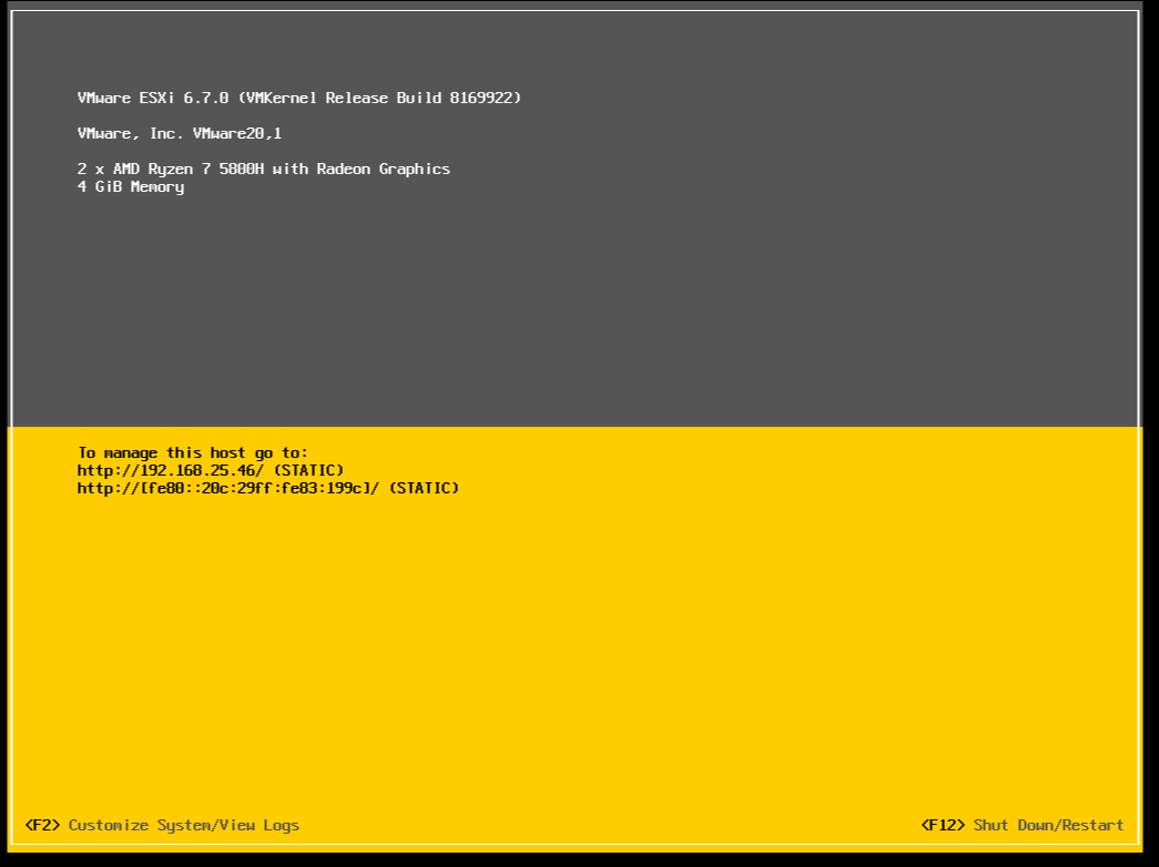 1. 준비된 ESXi 6.7 이미지로 부팅