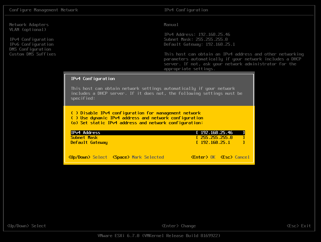 10. Set static IPv4 address and network configuration 체크 (체크 시 space 입력) 후 IP 세팅