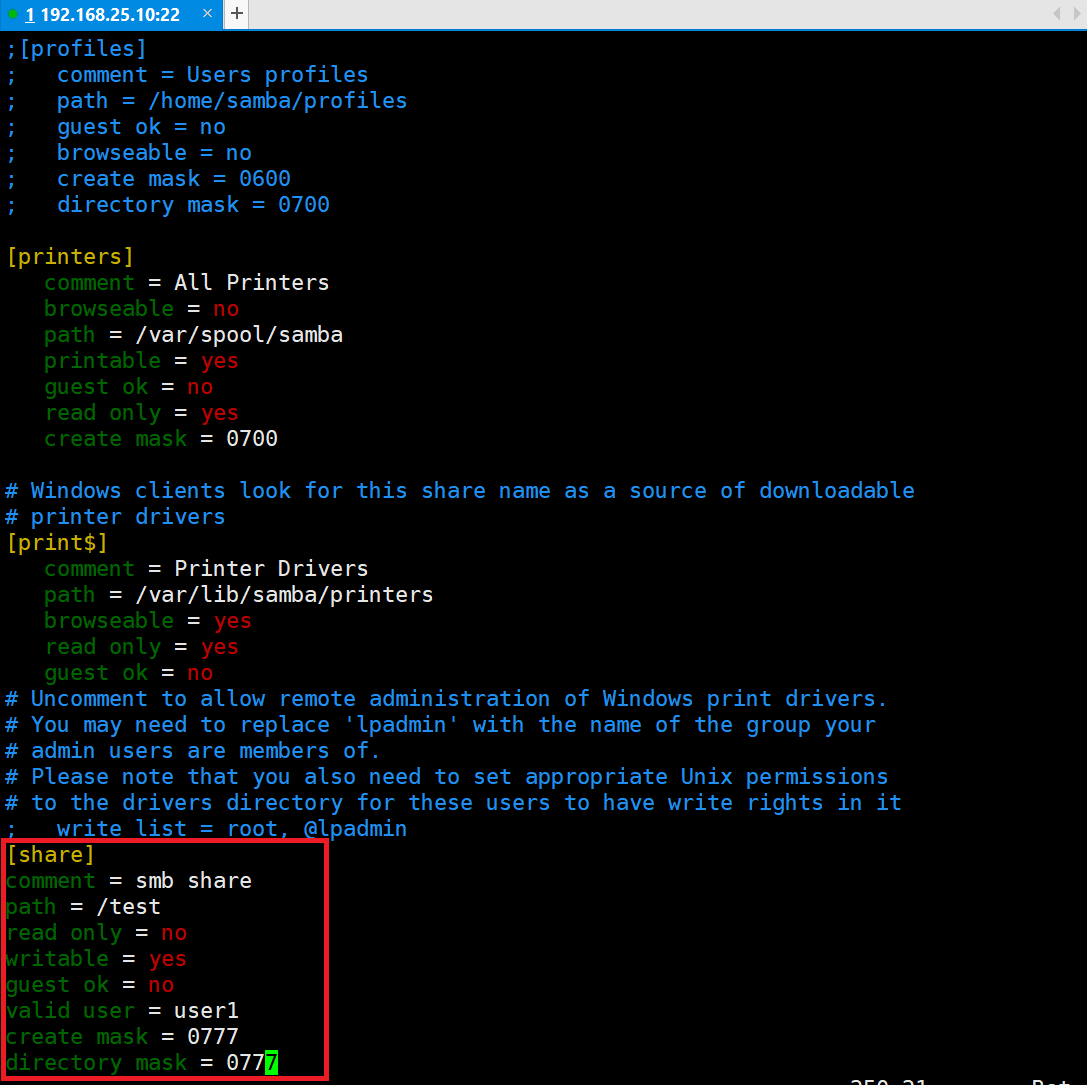 #vi /etc/samba/smb.conf