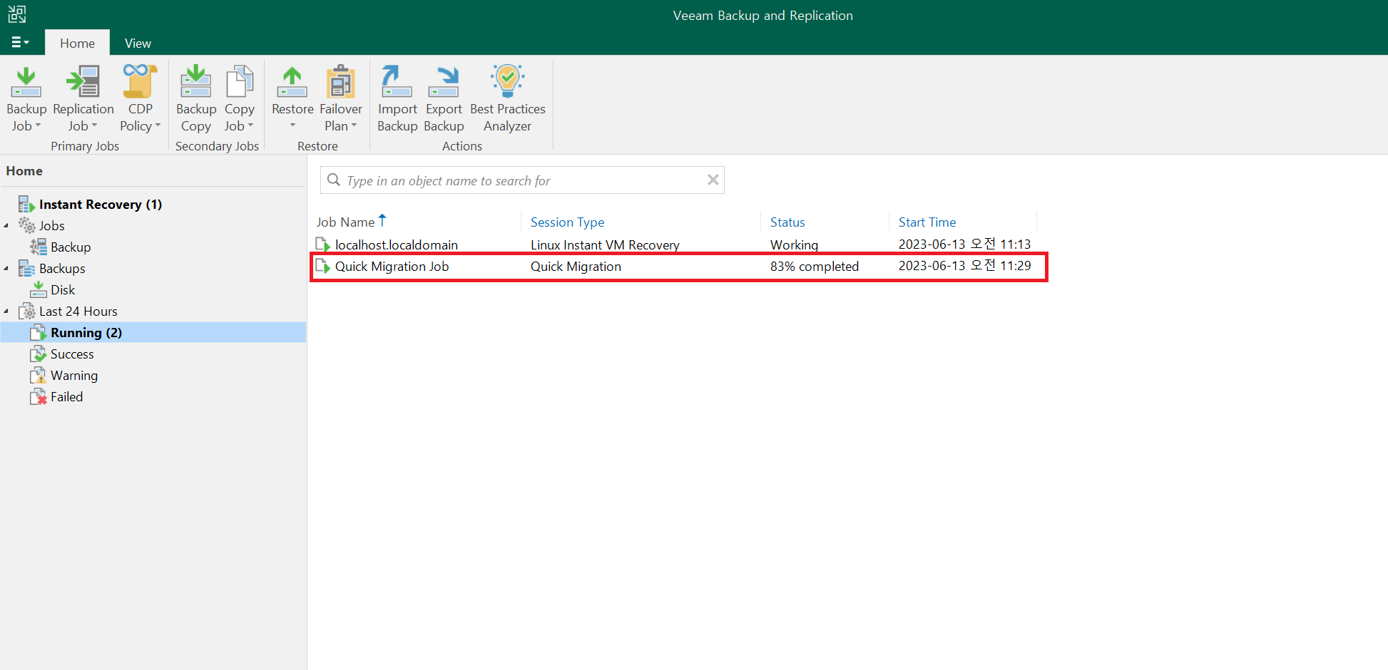 - Instant Recovery 메뉴 클릭 후 -> 원하는 Host 우클릭 후 -> Migrate to production... 클릭