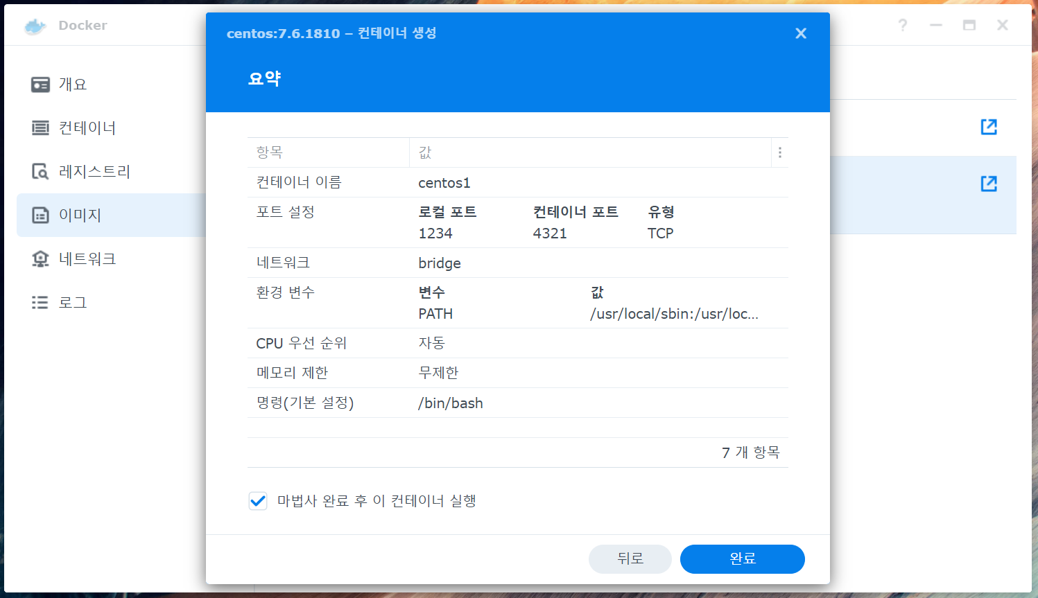 Synology NAS 장비의 도커 패키지 기능 설치 후 컨테이너의 대한 연결 접속 및 구성 설정을 진행한다.
