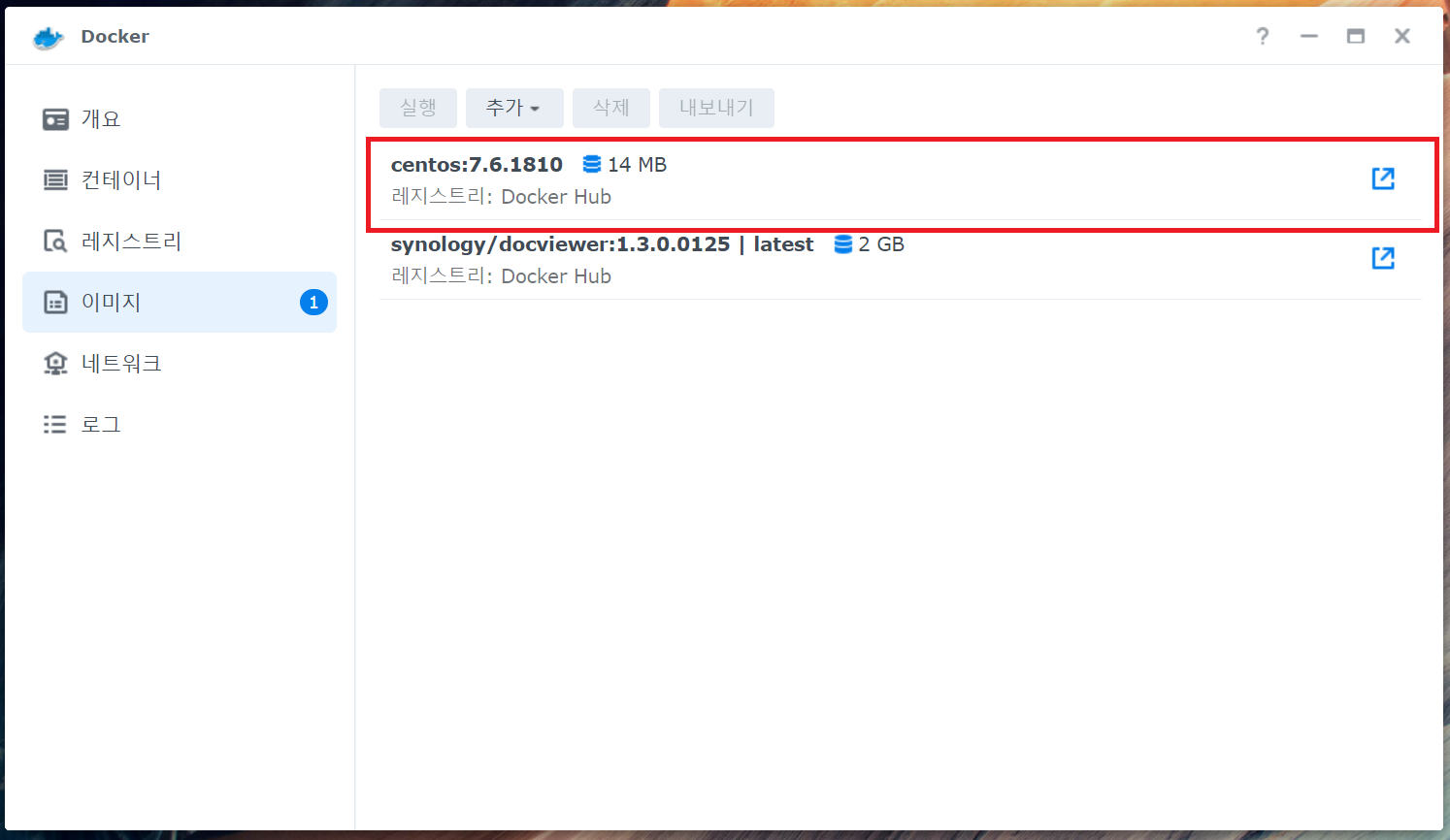 4. 다운로드 받은 레지스트리 이미지 메뉴에서 확인 후 실행