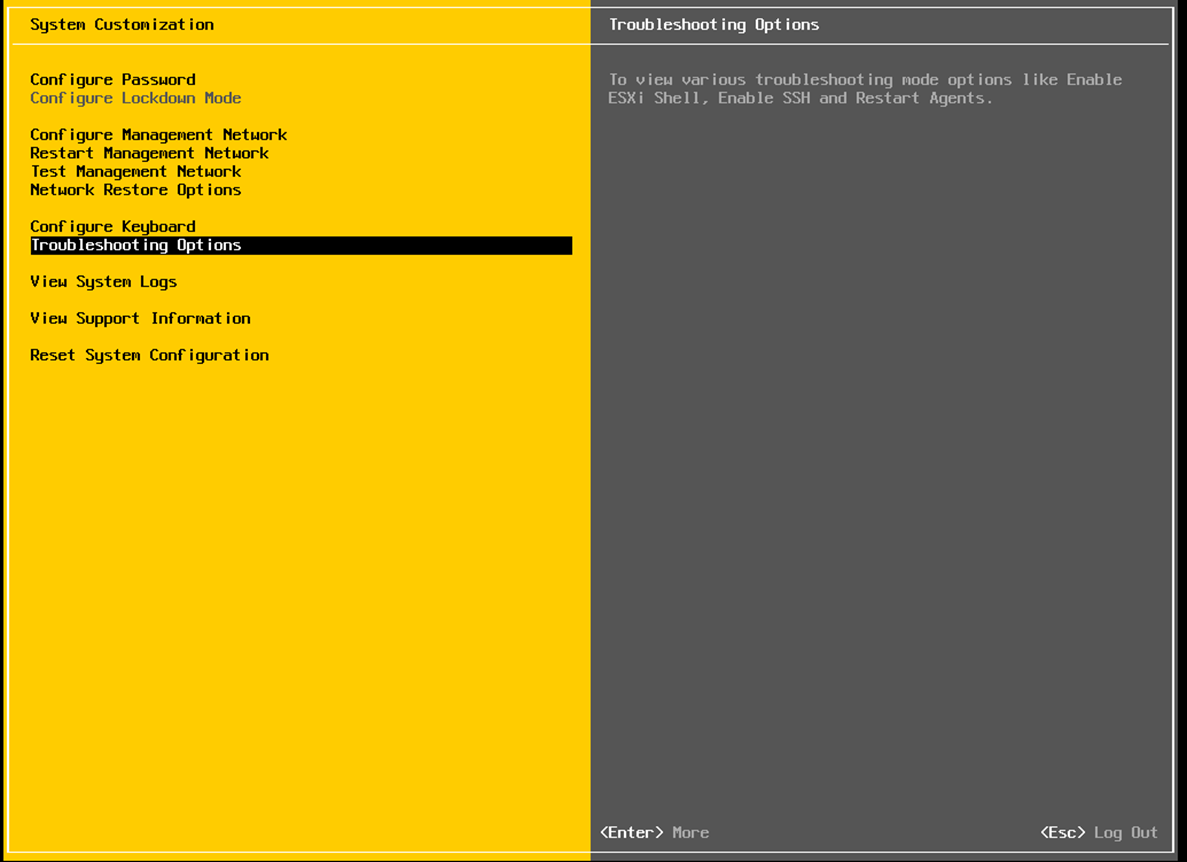 - Troubleshooting Mode Options -> Disable ESXi Shell