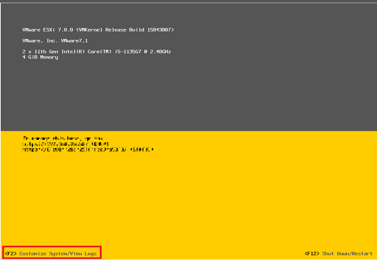 - 콘솔 화면 -> F2 Customize System/View Logs