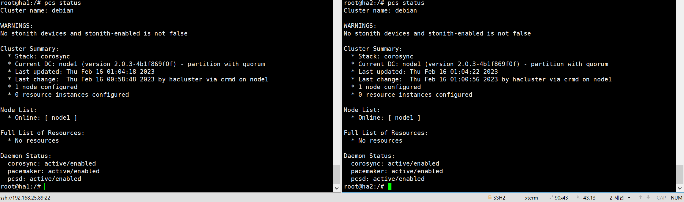 2. 설치 후 HA 서비스 상태 확인