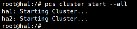 #pcs cluster setup cluster ha1 ha2